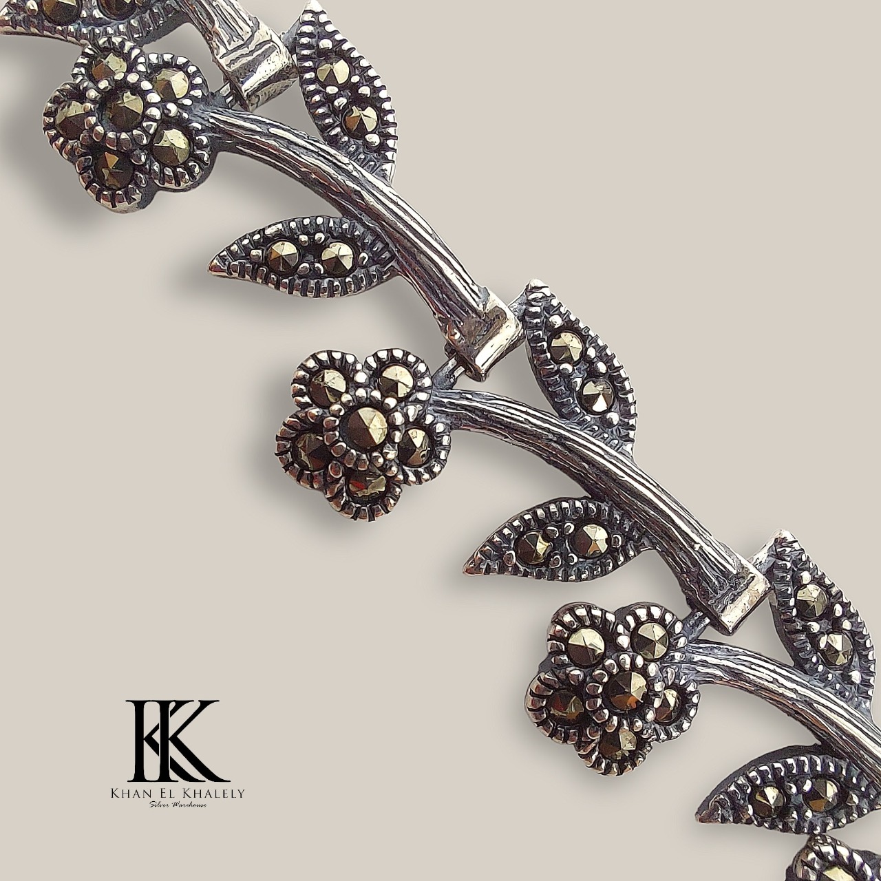 انسيال وردة انيق من أجود أنواع الفضة مُطعم باحجار المركزيت لونها نحاسى