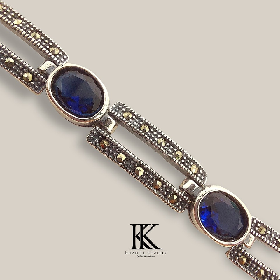انسيال انيق من أجود أنواع الفضة مُطعم باحجار زرقاء من الزركون